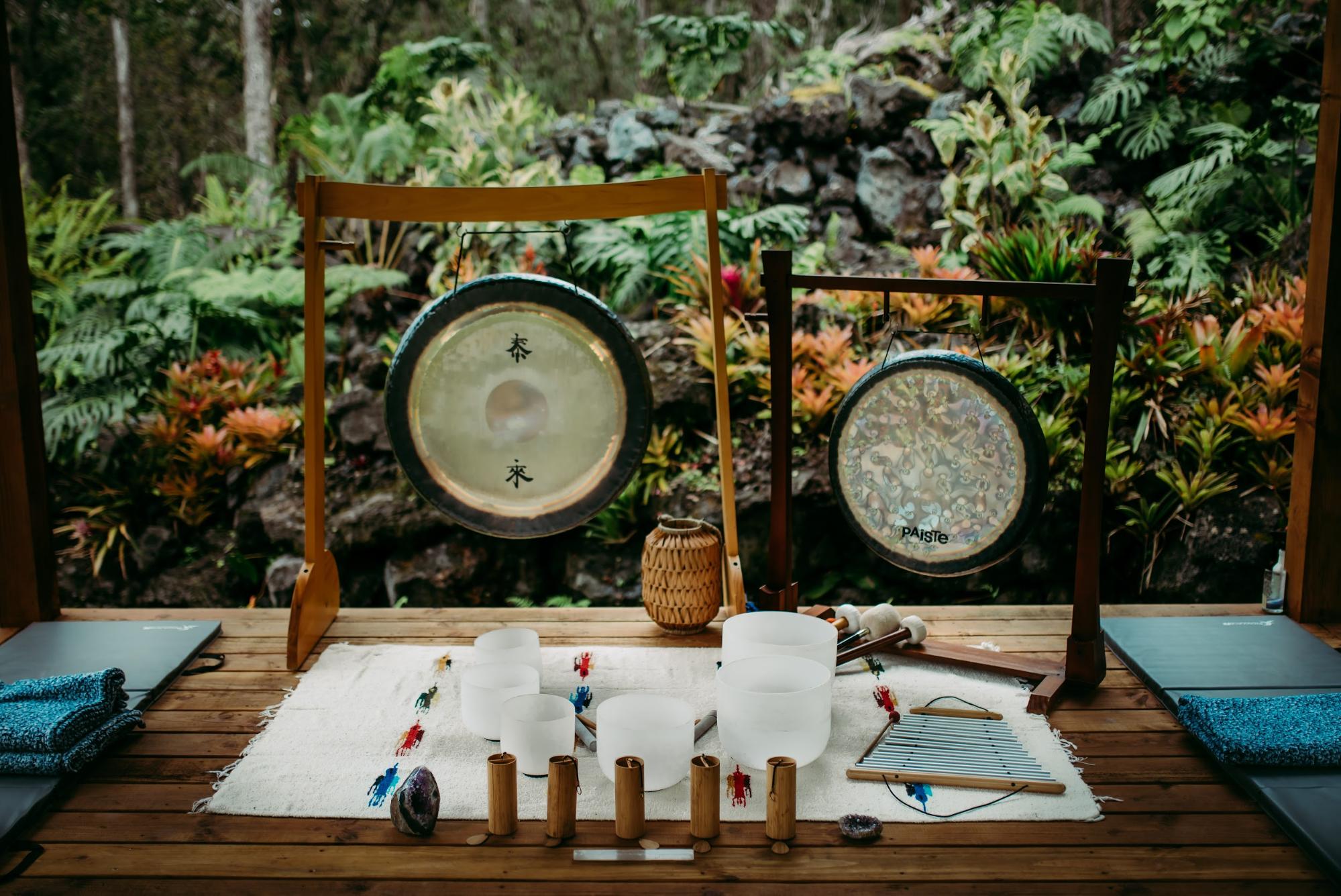 At Kona Cloud Forest Sanctuary, our sound baths weave together nature and vibration — using carefully chosen instruments that invite deep relaxation, restoration, and connection with the land.